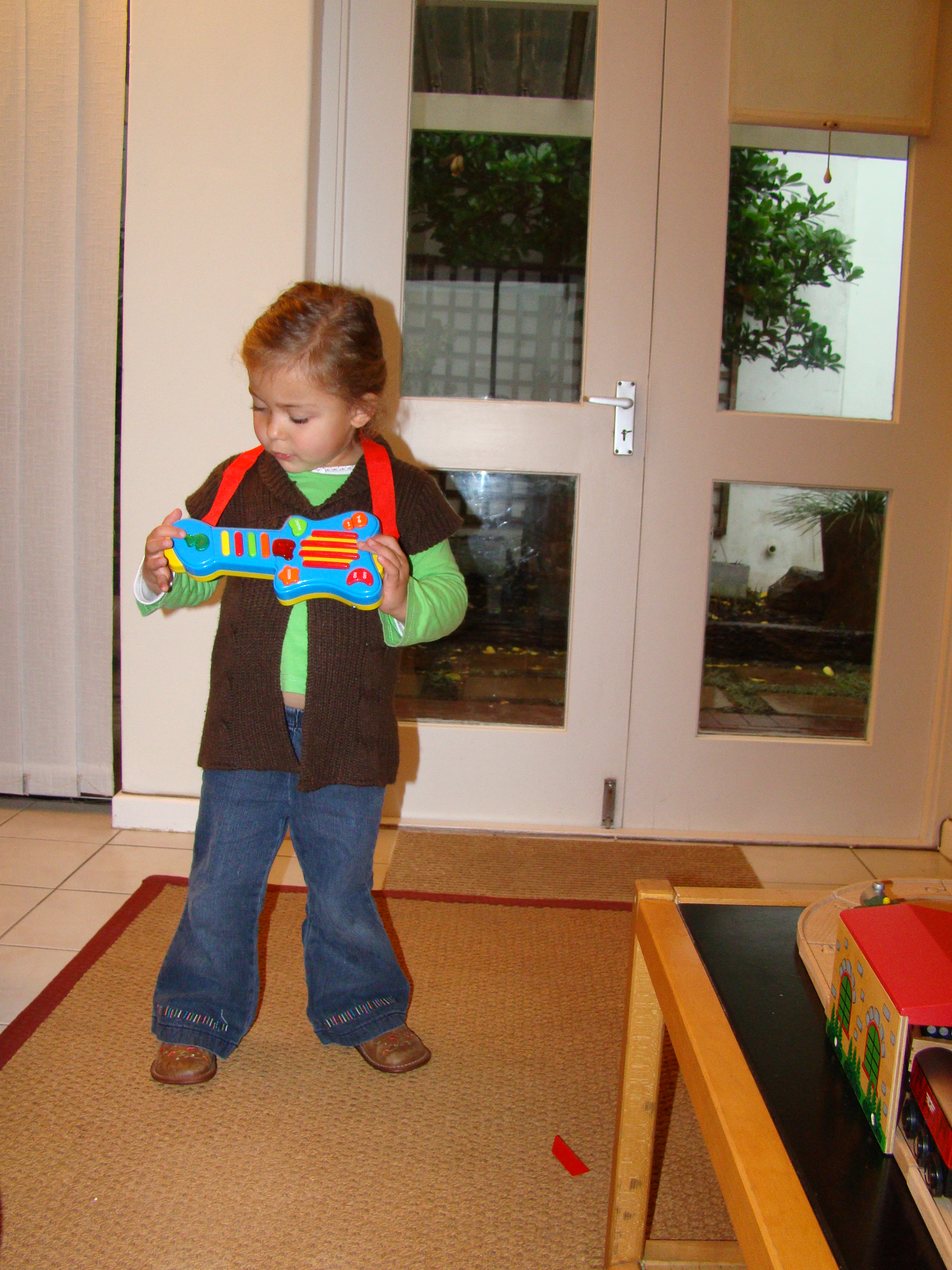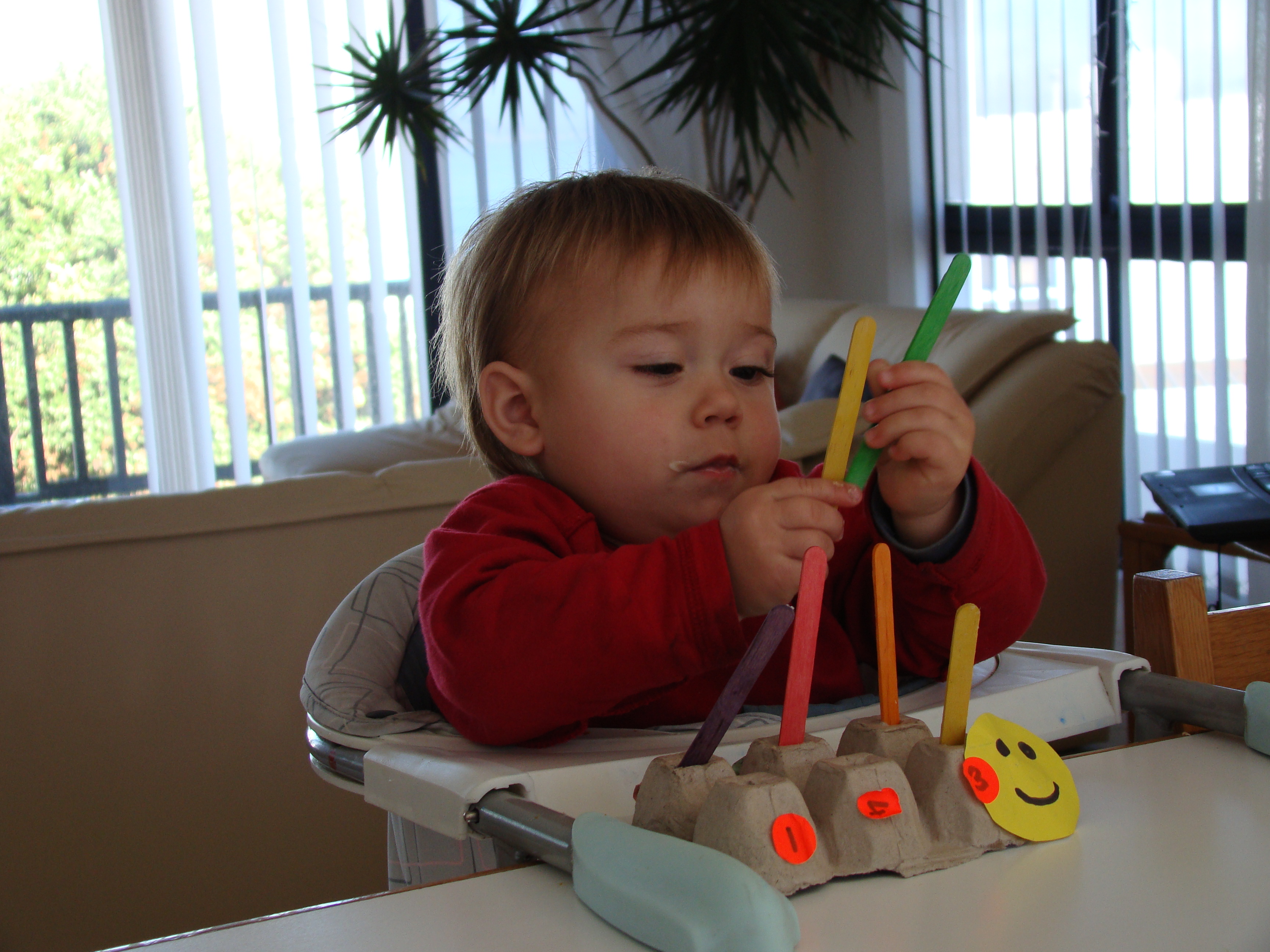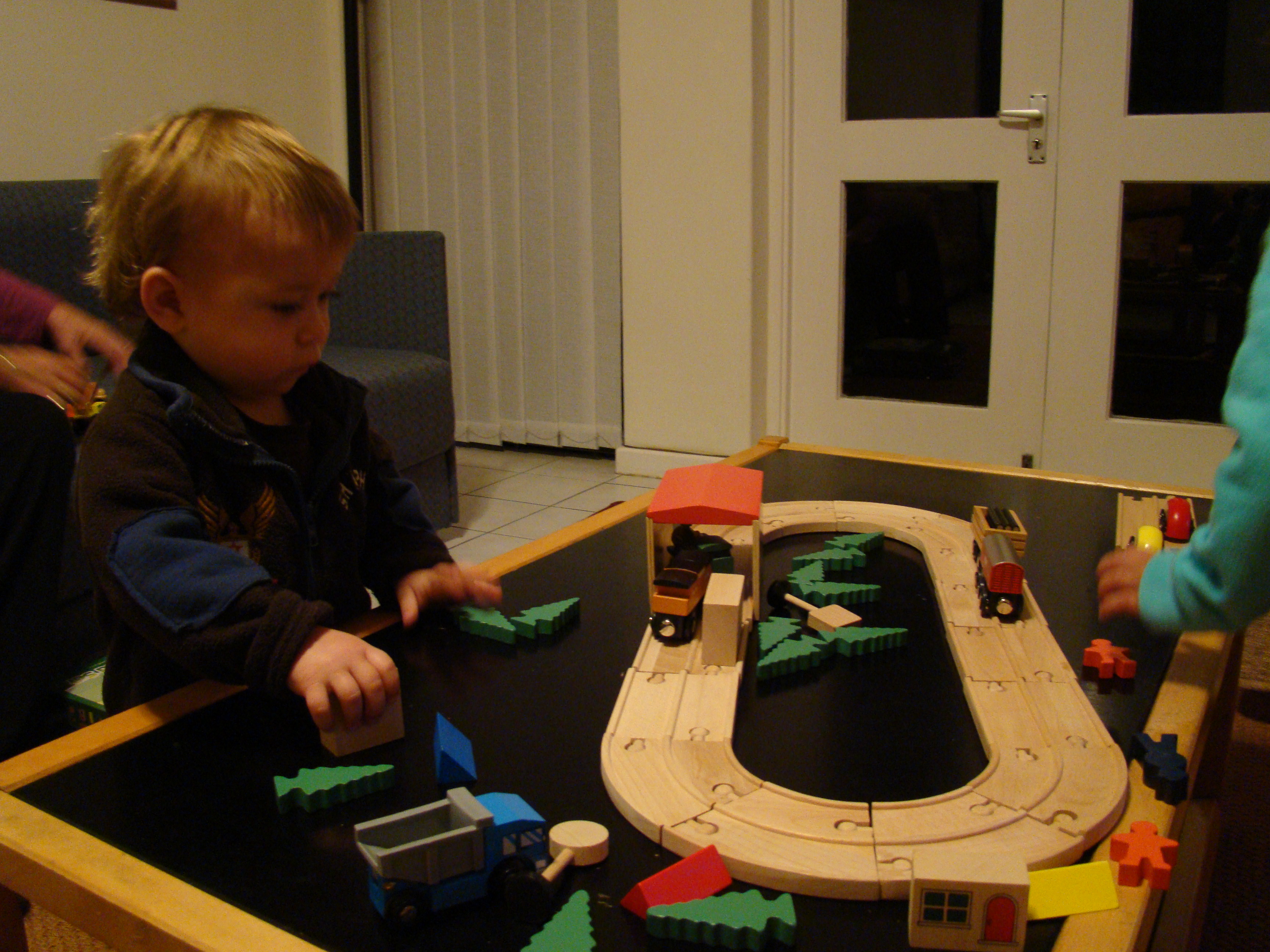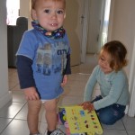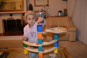 Here Lee-Ann is finally getting a turn. We had to make Camryn sit on the chair and wait his turn as he kept hijacking the ball. Please note his not-s0-impressed face.