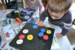 Great fun was had making medals out of crazy dough. It was a neat way to reinforceĀ number recognition for Camryn. And Eryn was in her element when we painted the medals in SHINY gold, silver and bronze.