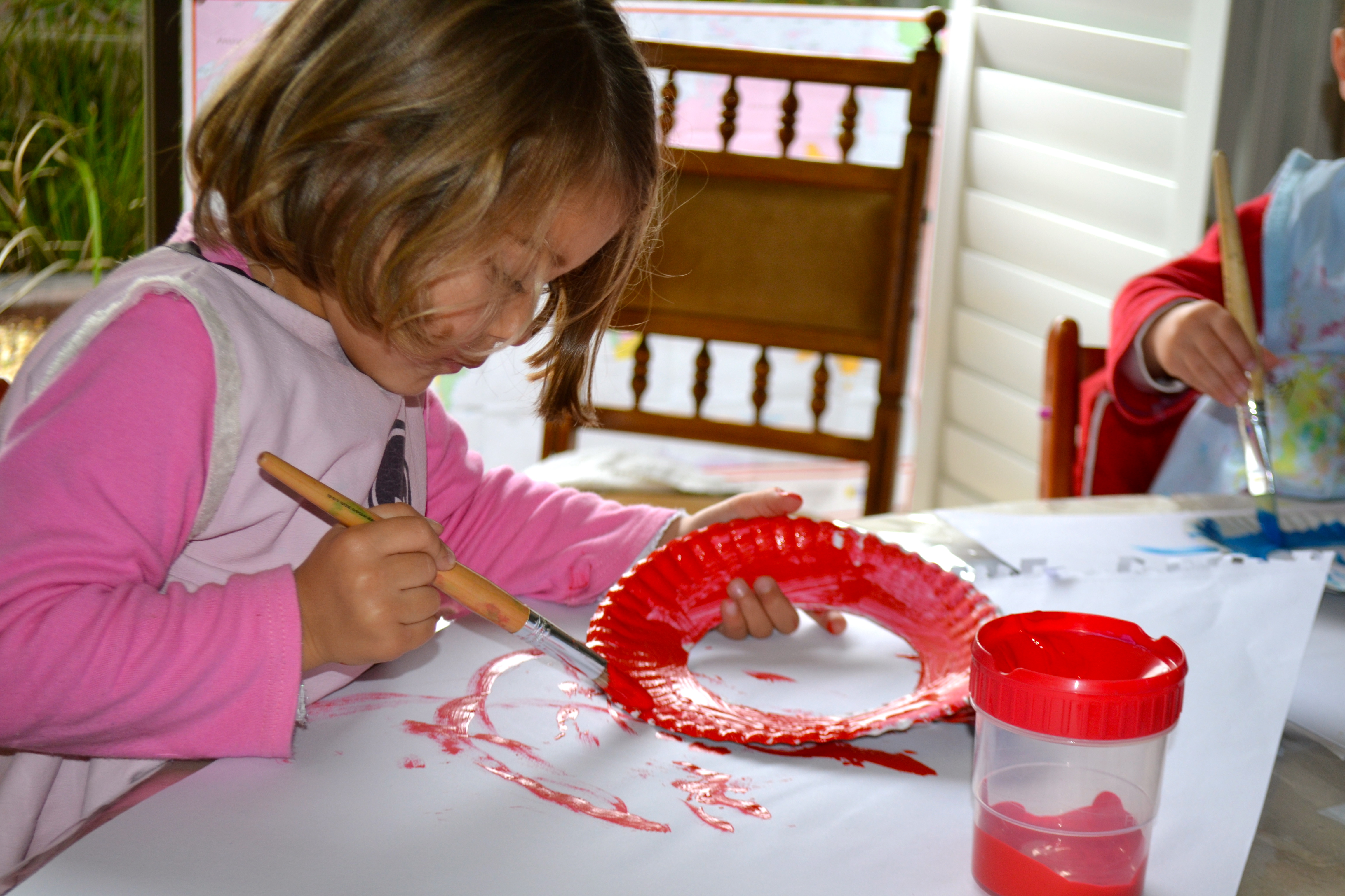 We cut out the centre of paper plates, painted them and made our own olympic rings.