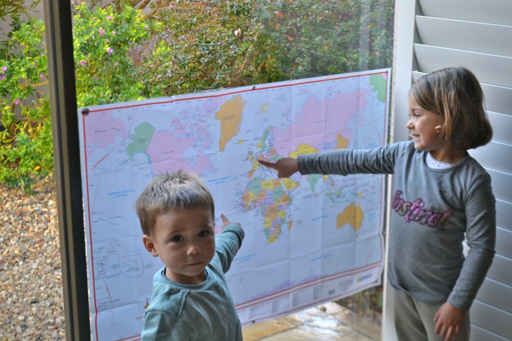 We learnt about the round shape of the world, pinned up an atlas and found the countries we had chosen on the atlas.