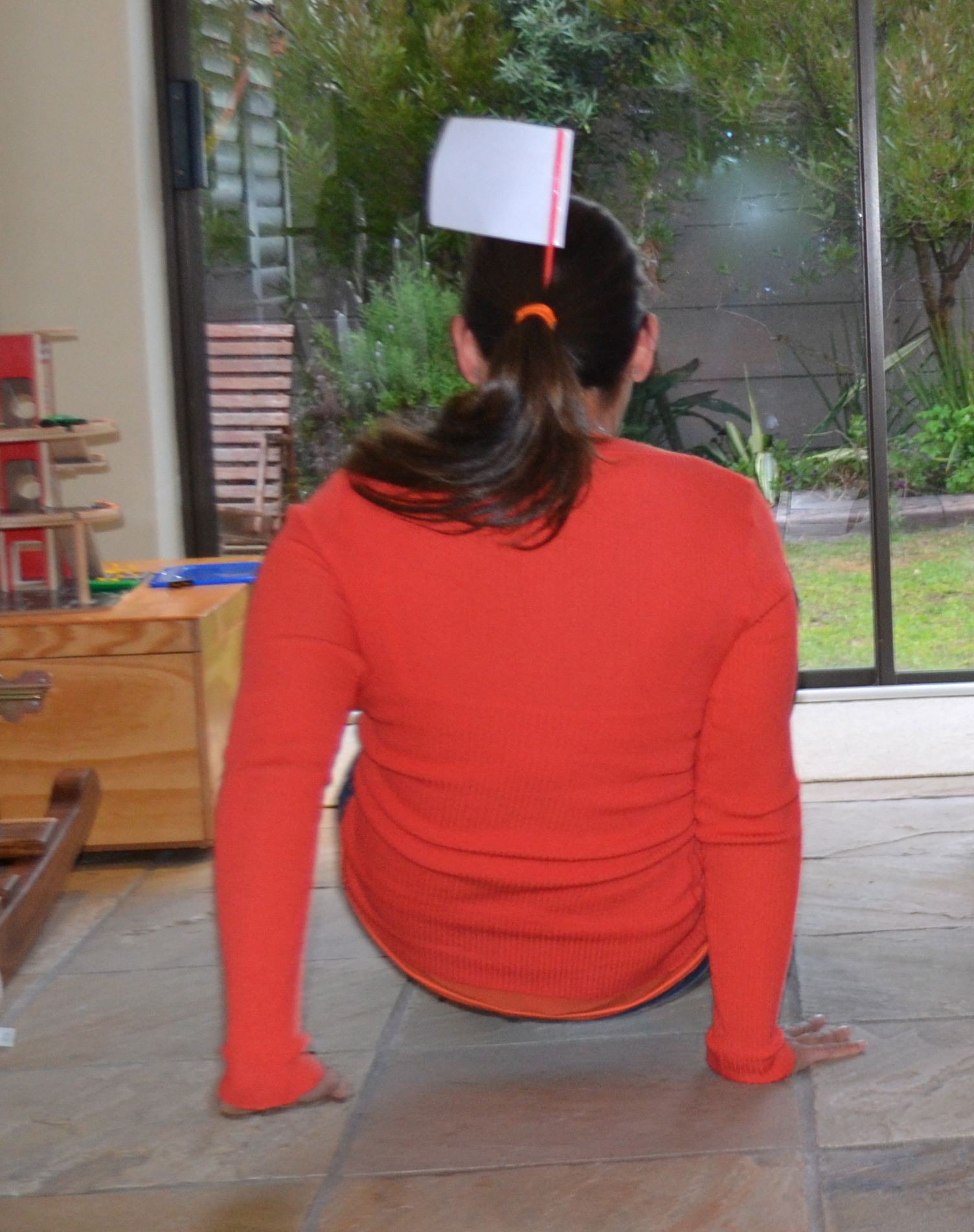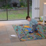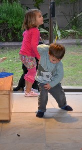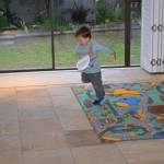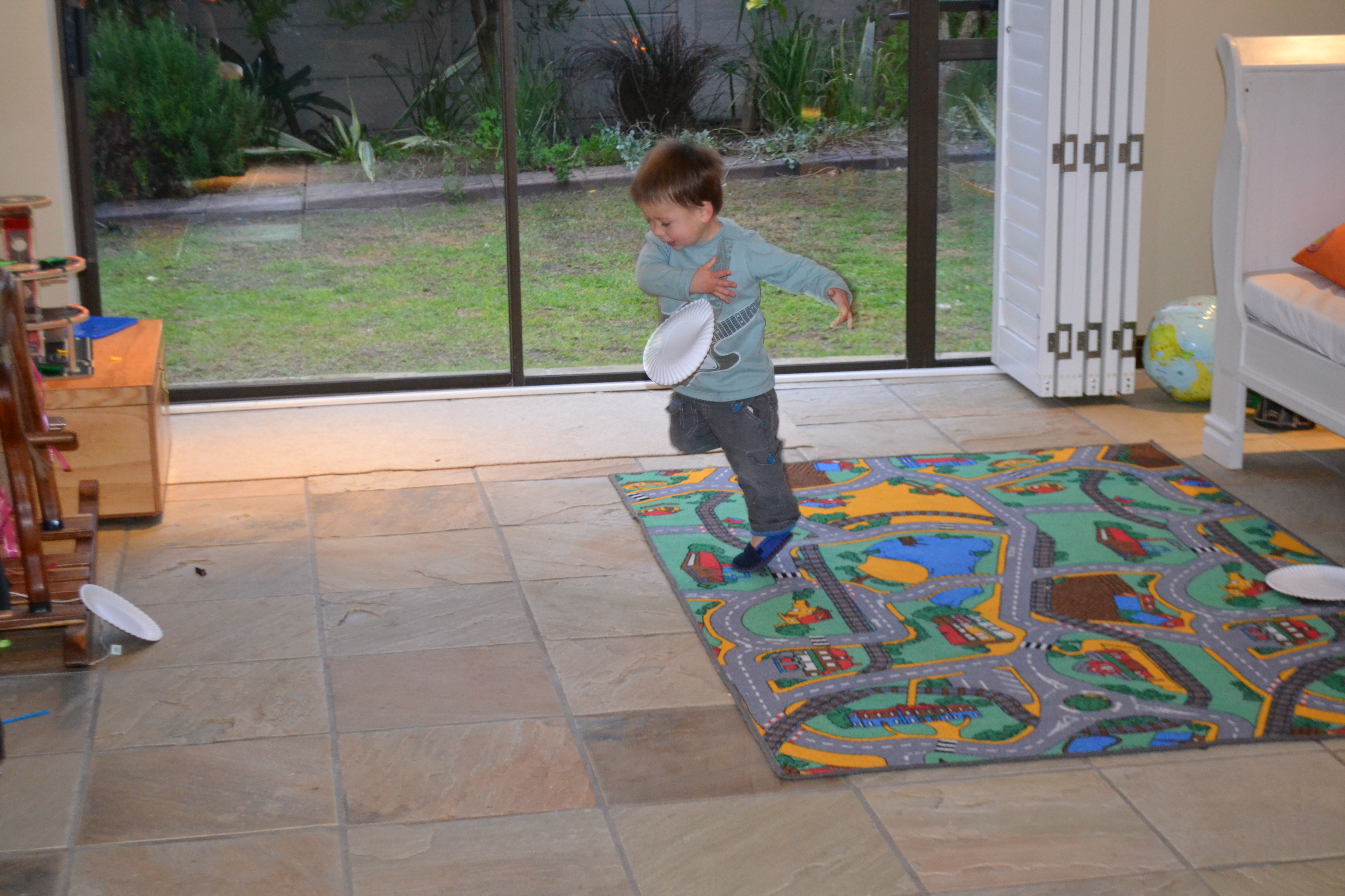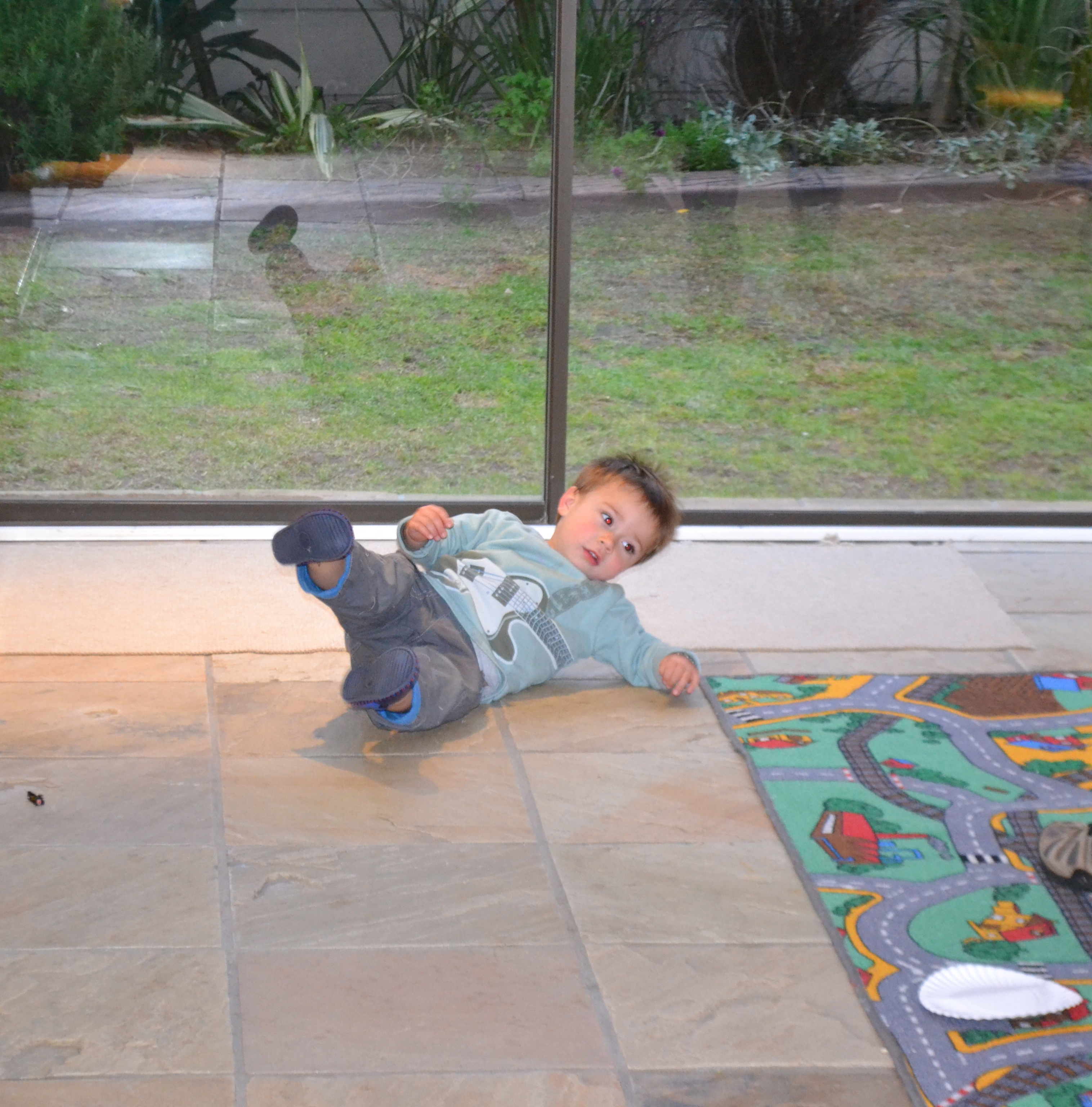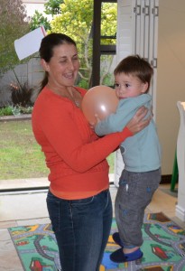 Here Lee-Ann is finally getting a turn. We had to make Camryn sit on the chair and wait his turn as he kept hijacking the ball. Please note his not-s0-impressed face.