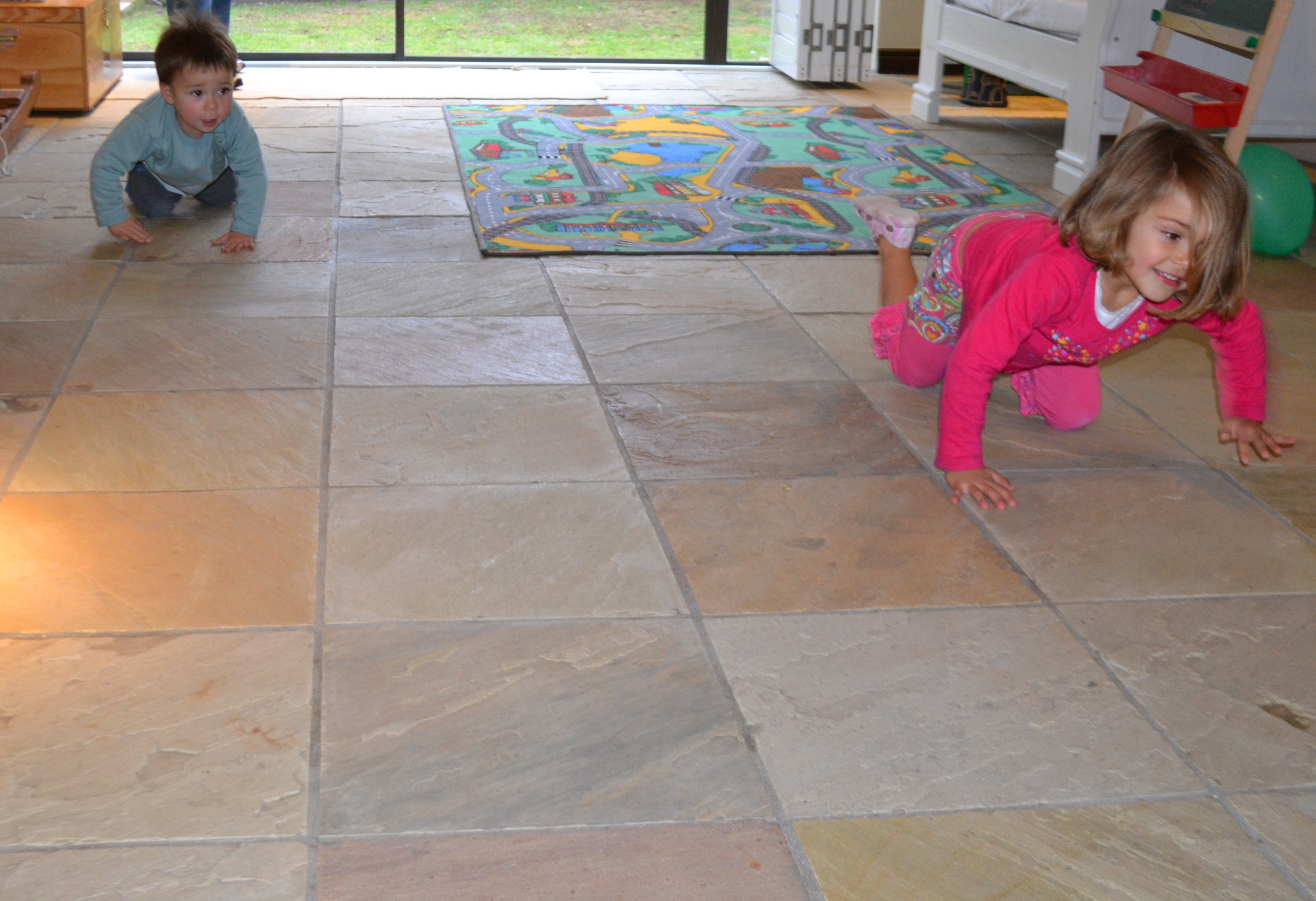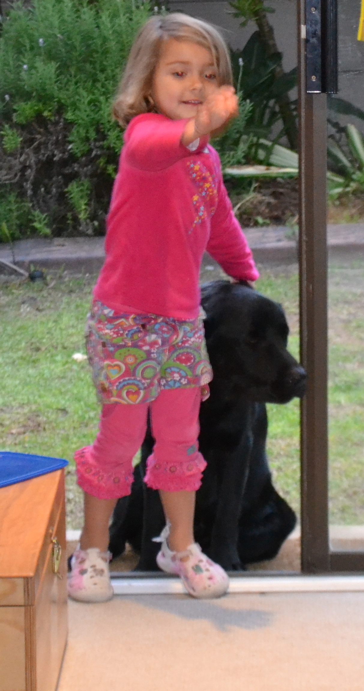 At some point, Eryn got a little distracted from the javelin competition that was at hand. Playing with Tom our black Labrador won her interest for pretty much the rest of the olympic games.